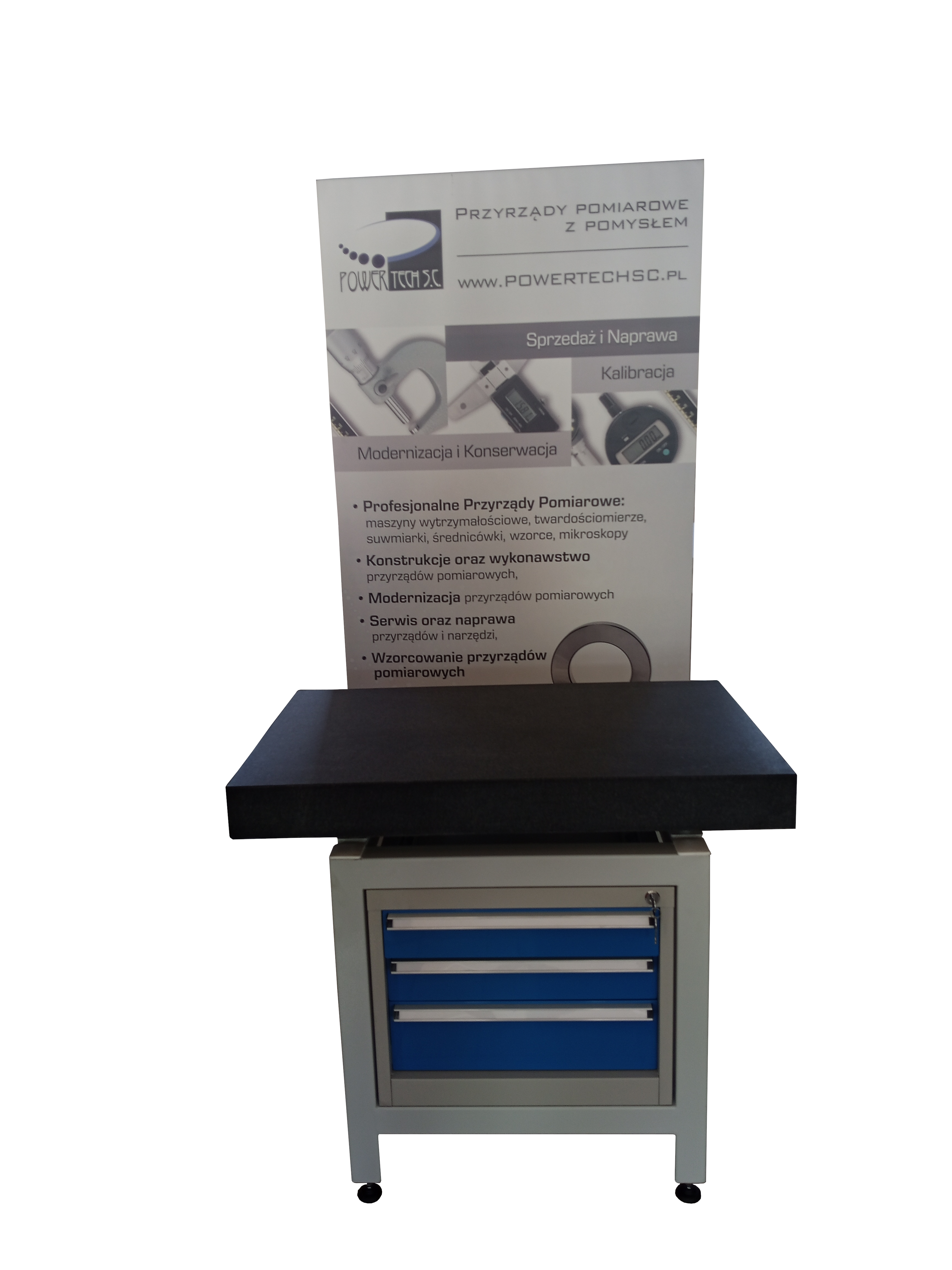 Nowość w naszym asortymencie. Solidny spawany stolik pod płyty granitowe z szufladami.
